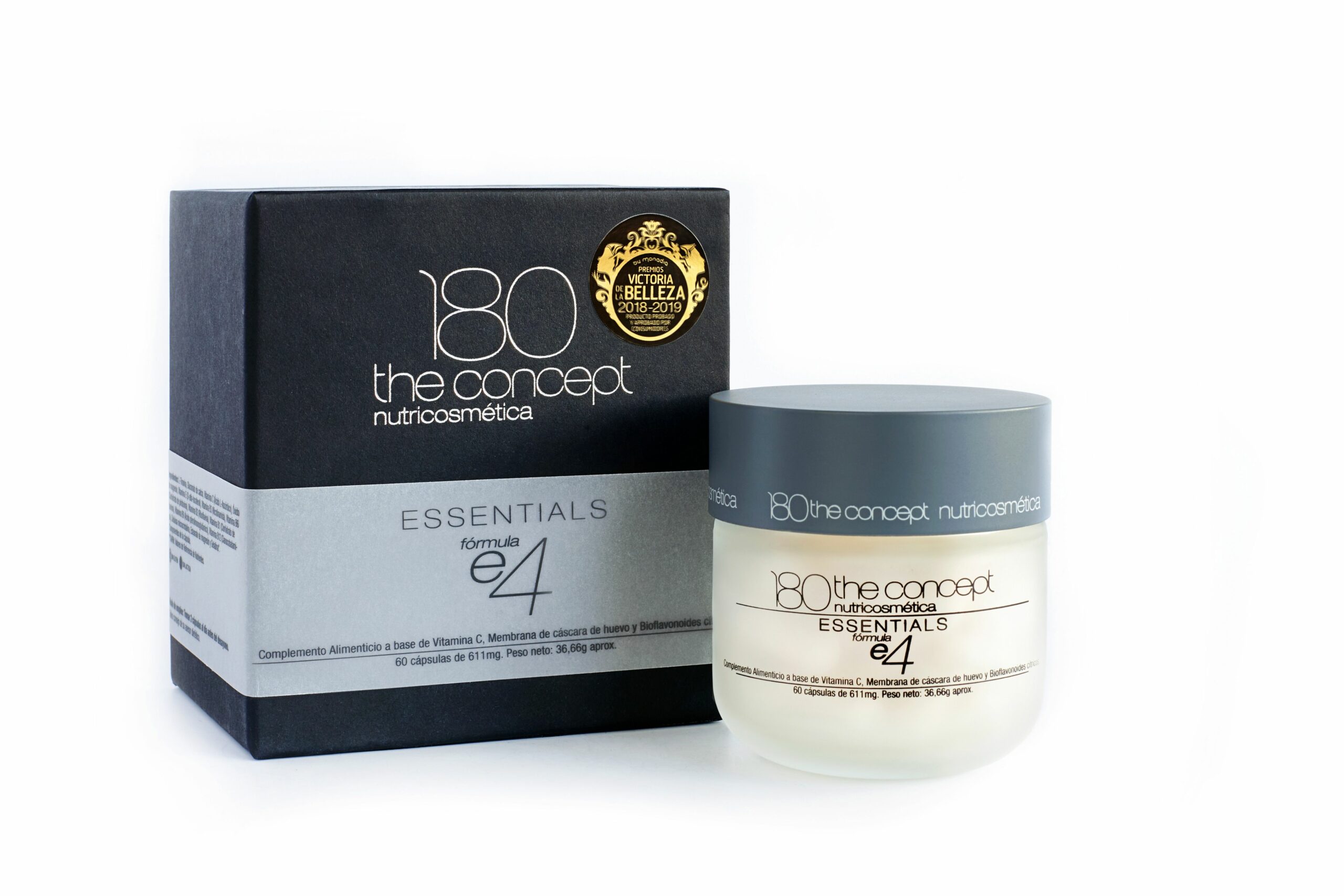 La Fórmula E4 de 180 the concept es un tratamiento avanzado de nutricosmética con un alto poder reparador y antiedad. Sus componentes principales son PureWay-C®, una forma patentada y probada de vitamina C que permiten que el ácido ascórbico ingrese a las células más rápidamente de manera segura y eficaz, y OvoDerm®, extracto de la membrana de huevo pura y nativa, una fuente de colágeno apto para vegetarianos, para el cuidado y la mejora de la salud de la piel con un gran efecto antiedad.